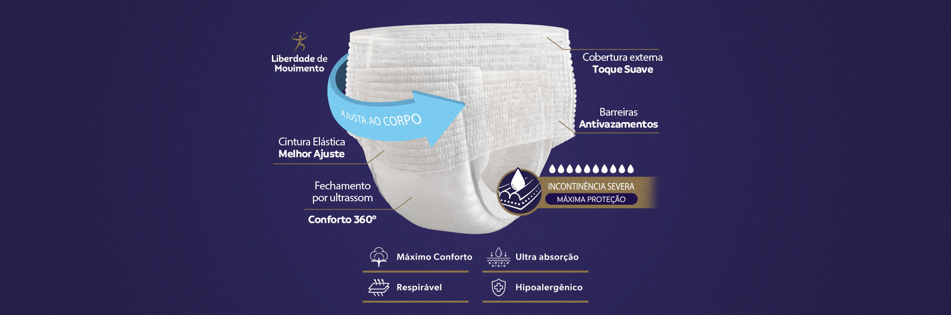 Absorção extra e barreiras laterais, é indicada para incontinência severa, oferecendo máxima proteção contra vazamentos e garantindo noites mais tranquilas.
